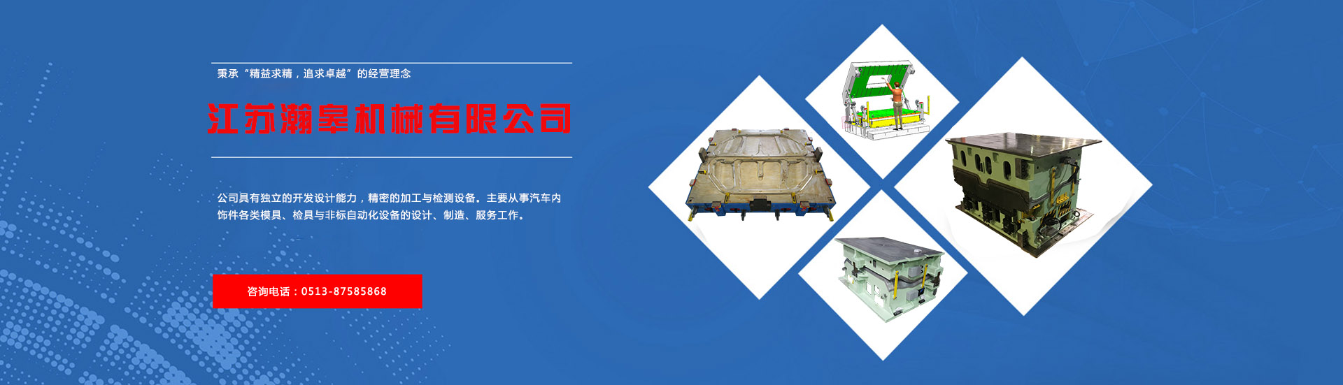 江苏瀚皋机械有限公司座落于江苏省如皋市如城镇丰源路166号。地理位置优越,交通便利,距G15高速如皋出口3km,距火车站3km;公司占地面积26,666 ㎡。 公司现有员工215人,每月模具产能30-40副,检具12-20副,工装设备15-20套。 公司具有独立的开发设计能力,精密的加工与检测设备。主要从事汽车内饰件各类模具、检具与非标自动化设备的设计、制造、服务工作。 |